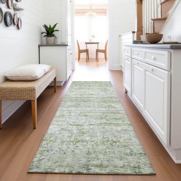 Mayfield Premium Machine Washable Abstract AMF1127 Aloe 2 ft. 3 in. x 7 ft. 6 in. Runner Rug