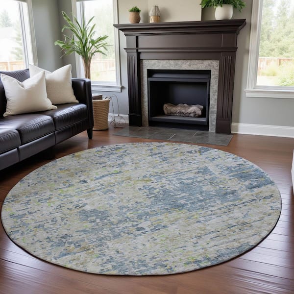 Mayfield Premium Machine Washable Abstract AMF1128 Blue 8 ft. x 8 ft. Round Rug