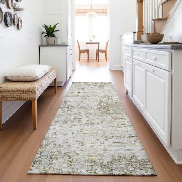 Mayfield Premium Machine Washable Abstract AMF1128 Taupe 2 ft. 3 in. x 7 ft. 6 in. Runner Rug