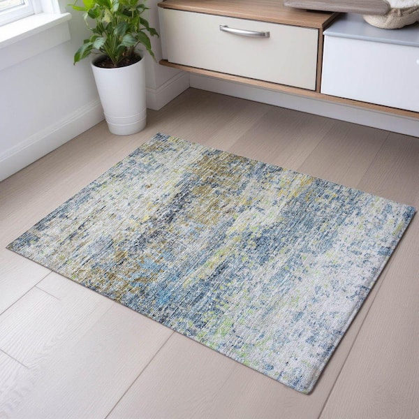 Mayfield Premium Machine Washable Abstract AMF1129 Blue 2 ft. x 3 ft. Area Rug