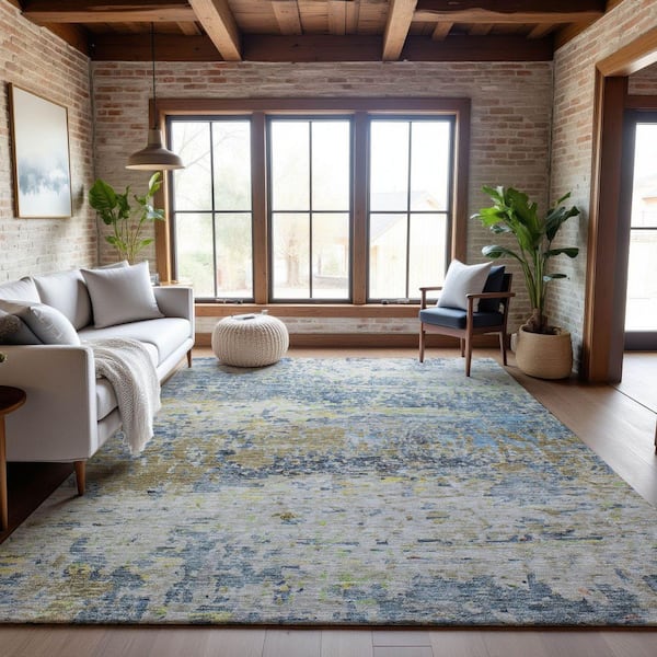 Mayfield Premium Machine Washable Abstract AMF1129 Blue 3 ft. x 5 ft. Area Rug