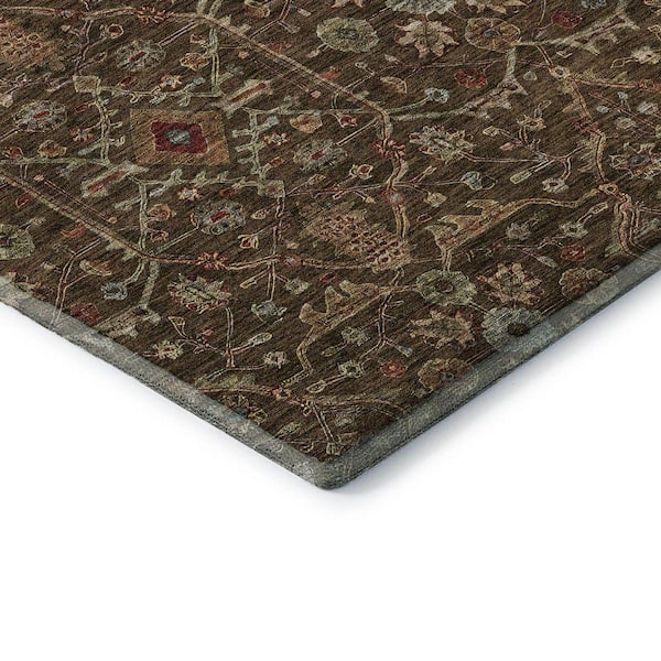 Mayfield Premium Machine Washable Abstract AMF1130 Chocolate 8 ft. x 8 ft. Round Rug