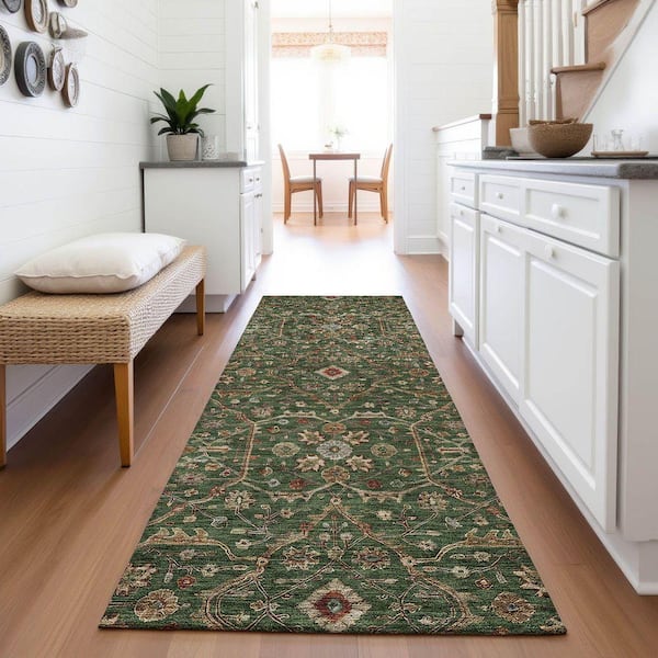 Mayfield Premium Machine Washable Abstract AMF1130 Emerald 2 ft. 3 in. x 7 ft. 6 in. Runner Rug