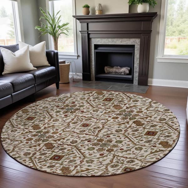 Mayfield Premium Machine Washable Abstract AMF1130 Ivory 8 ft. x 8 ft. Round Rug
