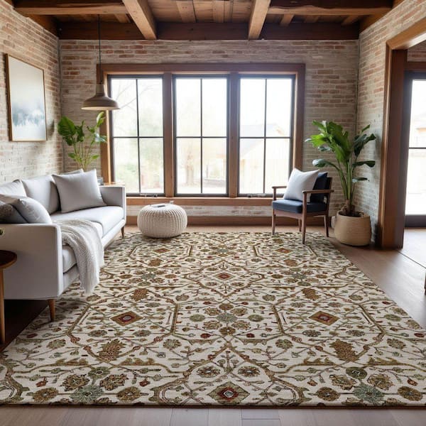 Mayfield Premium Machine Washable Abstract AMF1130 Ivory 9 ft. x 12 ft. Area Rug