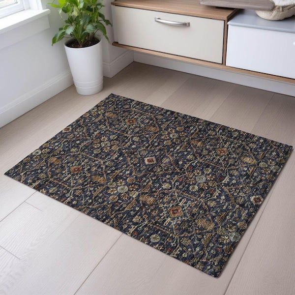 Mayfield Premium Machine Washable Abstract AMF1130 Navy 2 ft. x 3 ft. Area Rug