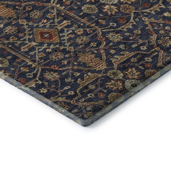 Mayfield Premium Machine Washable Abstract AMF1130 Navy 8 ft. x 8 ft. Round Rug