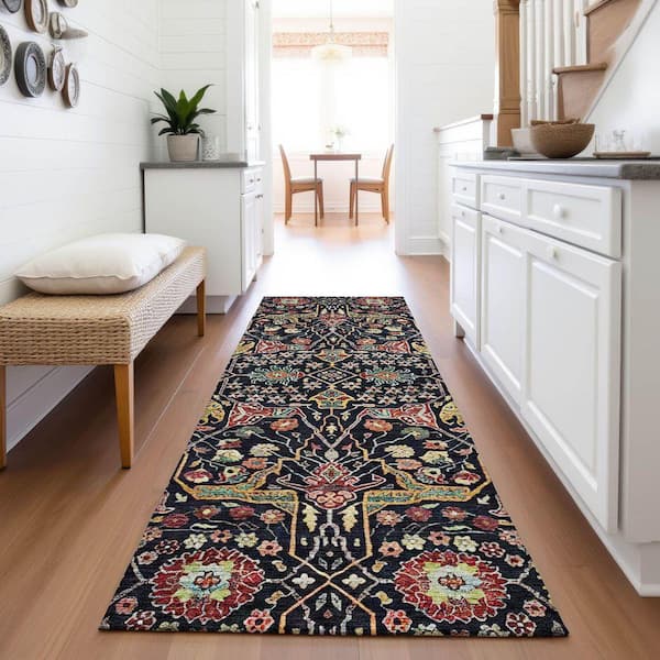 Mayfield Premium Machine Washable Abstract AMF1132 Black 2 ft. 3 in. x 7 ft. 6 in. Runner Rug