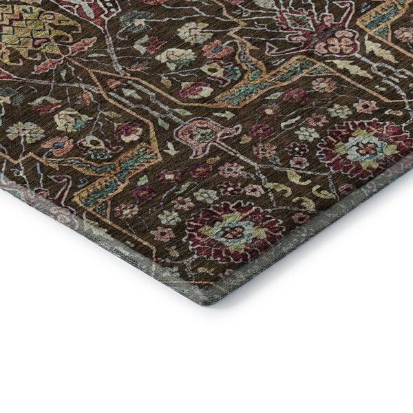 Mayfield Premium Machine Washable Abstract AMF1132 Chocolate 8 ft. x 8 ft. Round Rug