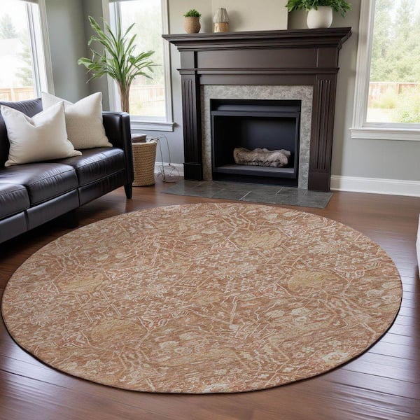 Mayfield Premium Machine Washable Abstract AMF1133 Coral 8 ft. x 8 ft. Round Rug