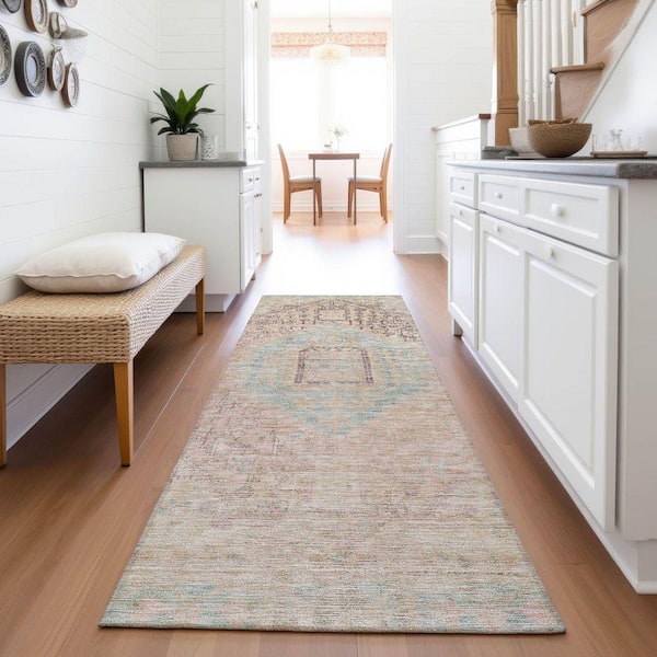 Mayfield Premium Machine Washable Abstract AMF1134 Pink 2 ft. 3 in. x 7 ft. 6 in. Runner Rug