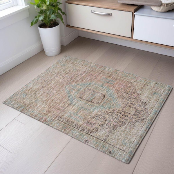Mayfield Premium Machine Washable Abstract AMF1134 Pink 2 ft. x 3 ft. Area Rug