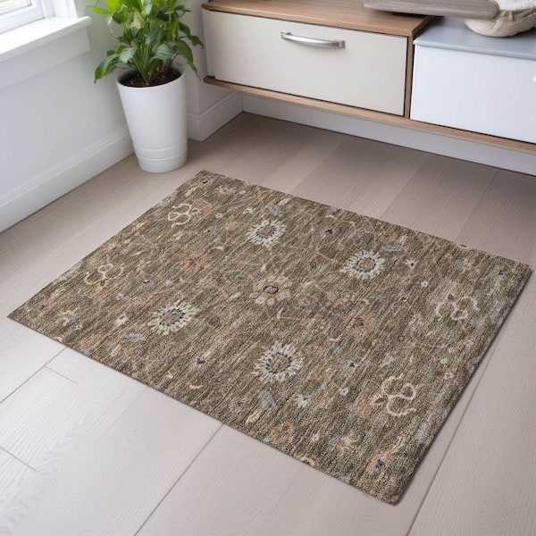 Mayfield Premium Machine Washable Abstract AMF1137 Brown 2 ft. x 3 ft. Area Rug