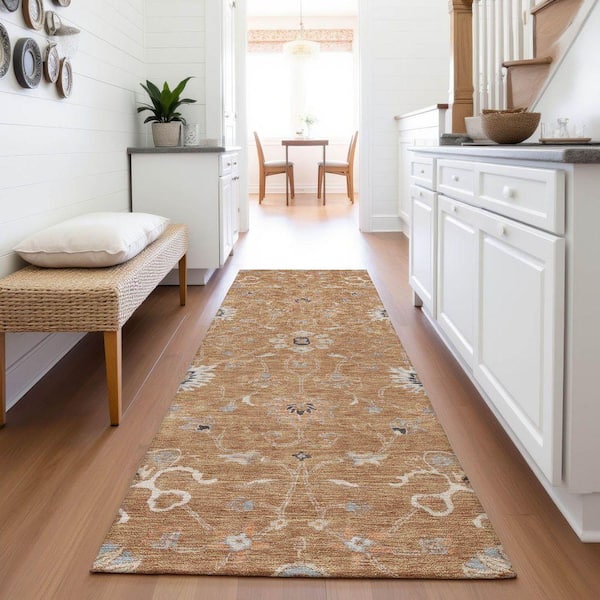 Mayfield Premium Machine Washable Abstract AMF1137 Copper 2 ft. 3 in. x 7 ft. 6 in. Runner Rug