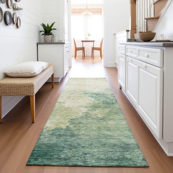 Mayfield Premium Machine Washable Abstract AMF1138 Green 2 ft. 3 in. x 7 ft. 6 in. Runner Rug