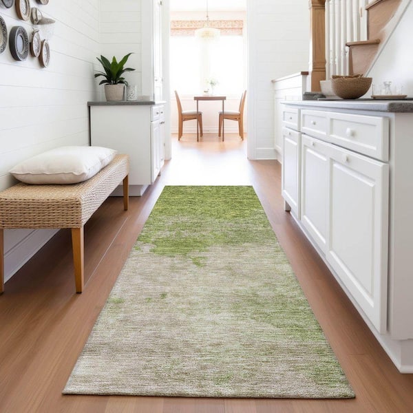 Mayfield Premium Machine Washable Abstract AMF1138 Olive 2 ft. 3 in. x 7 ft. 6 in. Runner Rug