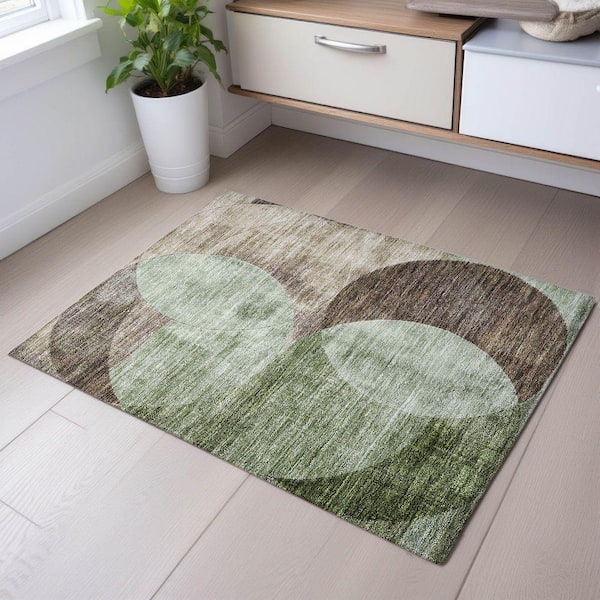 Mayfield Premium Machine Washable Abstract AMF1140 Aloe 2 ft. x 3 ft. Area Rug