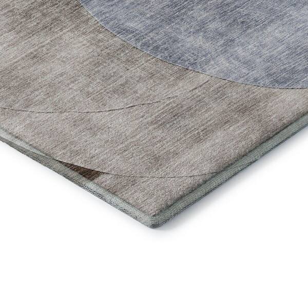 Mayfield Premium Machine Washable Abstract AMF1140 Denim 8 ft. x 8 ft. Round Rug