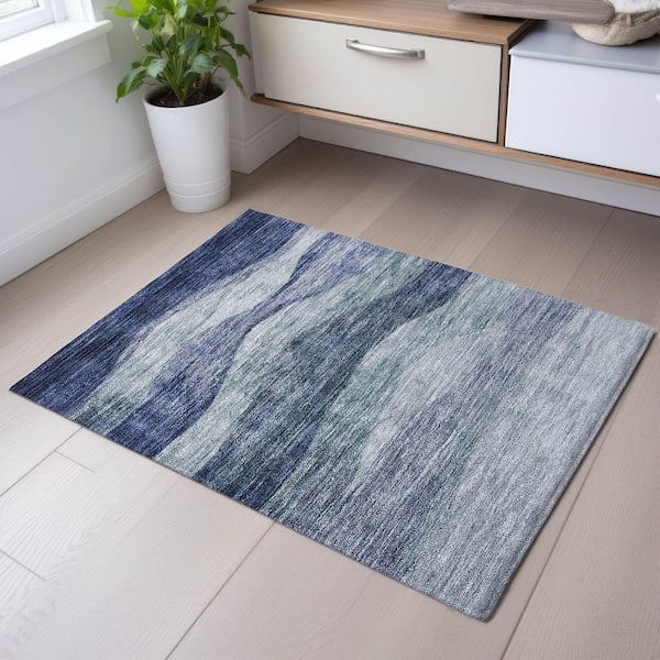 Mayfield Premium Machine Washable Abstract AMF1141 Blue 2 ft. x 3 ft. Area Rug