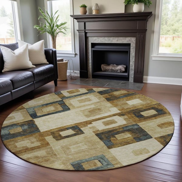 Mayfield Premium Machine Washable Abstract AMF1142 Beige 8 ft. x 8 ft. Round Rug