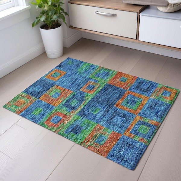 Mayfield Premium Machine Washable Abstract AMF1142 Denim 2 ft. x 3 ft. Area Rug