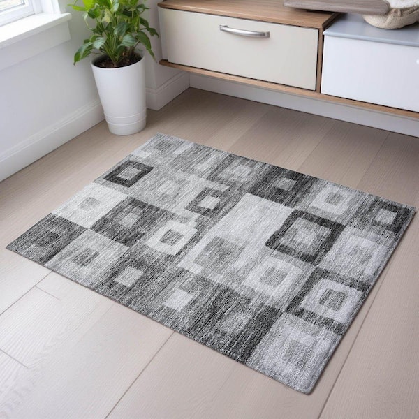Mayfield Premium Machine Washable Abstract AMF1142 Gray 2 ft. x 3 ft. Area Rug