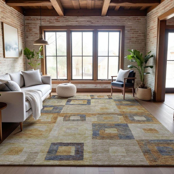 Mayfield Premium Machine Washable Abstract AMF1142 Linen 3 ft. x 5 ft. Area Rug