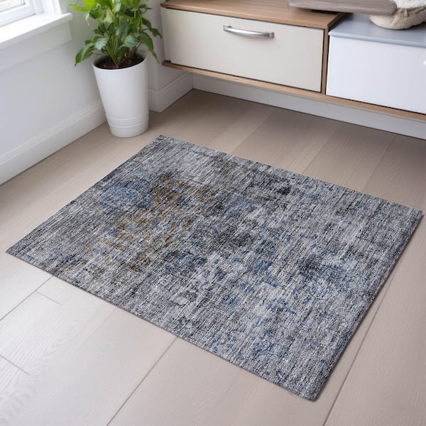 Mayfield Premium Machine Washable Abstract AMF1144 Blue 2 ft. x 3 ft. Area Rug