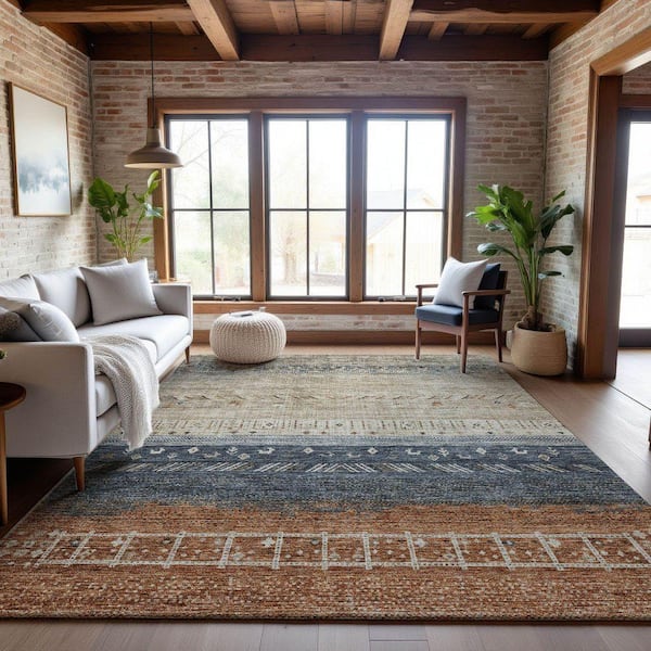 Mayfield Premium Machine Washable Abstract AMF1147 Brown 8 ft. x 10 ft. Area Rug
