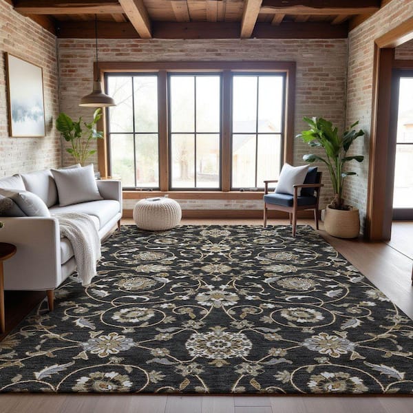Mayfield Premium Machine Washable Abstract AMF1149 Black 5 ft. x 7 ft. 6 in. Area Rug