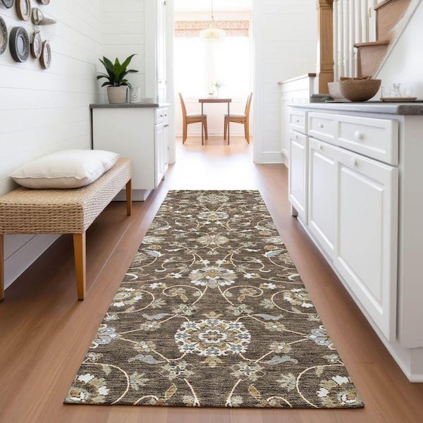 Mayfield Premium Machine Washable Abstract AMF1149 Chocolate 2 ft. 3 in. x 7 ft. 6 in. Runner Rug