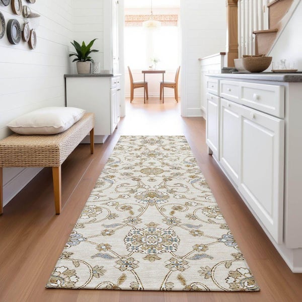 Mayfield Premium Machine Washable Abstract AMF1149 Ivory 2 ft. 3 in. x 7 ft. 6 in. Runner Rug