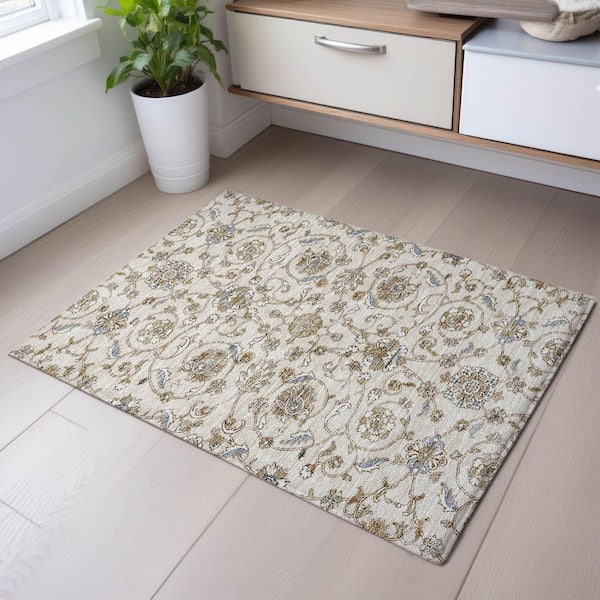Mayfield Premium Machine Washable Abstract AMF1149 Ivory 2 ft. x 3 ft. Area Rug