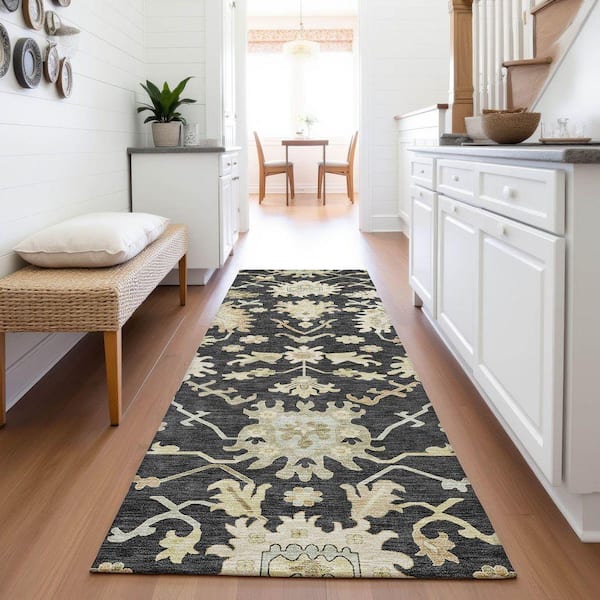 Mayfield Premium Machine Washable Abstract AMF1150 Black 2 ft. 3 in. x 7 ft. 6 in. Runner Rug