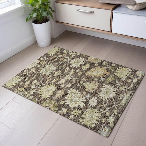 Mayfield Premium Machine Washable Abstract AMF1150 Chocolate 2 ft. x 3 ft. Area Rug