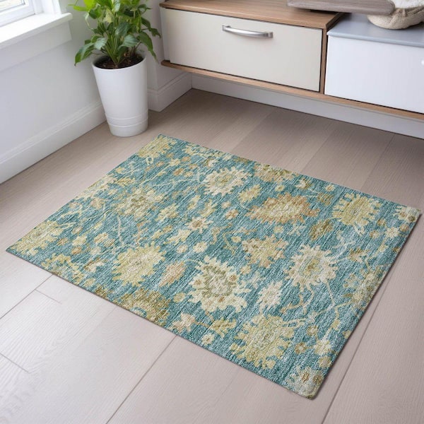 Mayfield Premium Machine Washable Abstract AMF1150 Teal 2 ft. x 3 ft. Area Rug