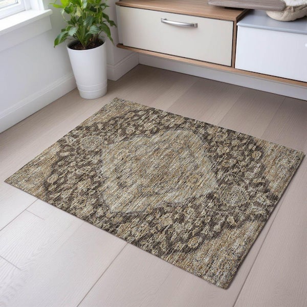 Mayfield Premium Machine Washable Abstract AMF1151 Chocolate 2 ft. x 3 ft. Area Rug