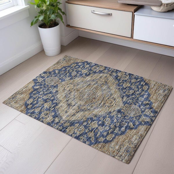 Mayfield Premium Machine Washable Abstract AMF1151 Navy 2 ft. x 3 ft. Area Rug