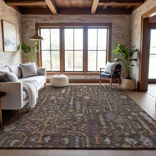 Mayfield Premium Machine Washable Abstract AMF1152 Brown 3 ft. x 5 ft. Area Rug