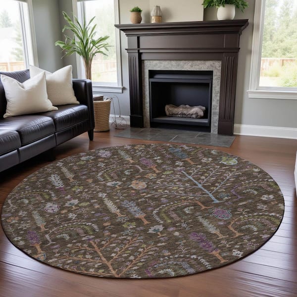 Mayfield Premium Machine Washable Abstract AMF1152 Brown 8 ft. x 8 ft. Round Rug