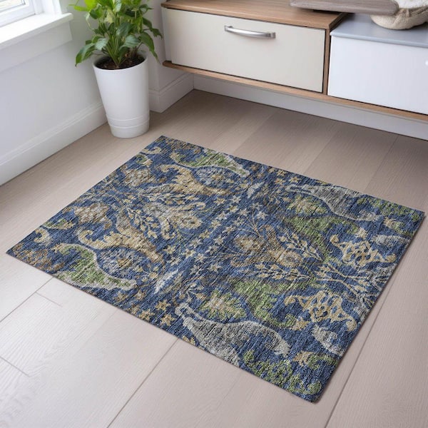 Mayfield Premium Machine Washable Abstract AMF1153 Navy 2 ft. x 3 ft. Area Rug