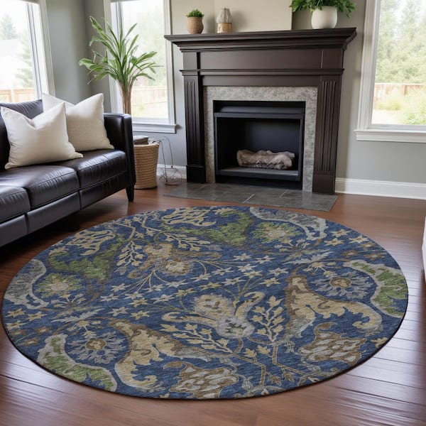 Mayfield Premium Machine Washable Abstract AMF1153 Navy 8 ft. x 8 ft. Round Rug