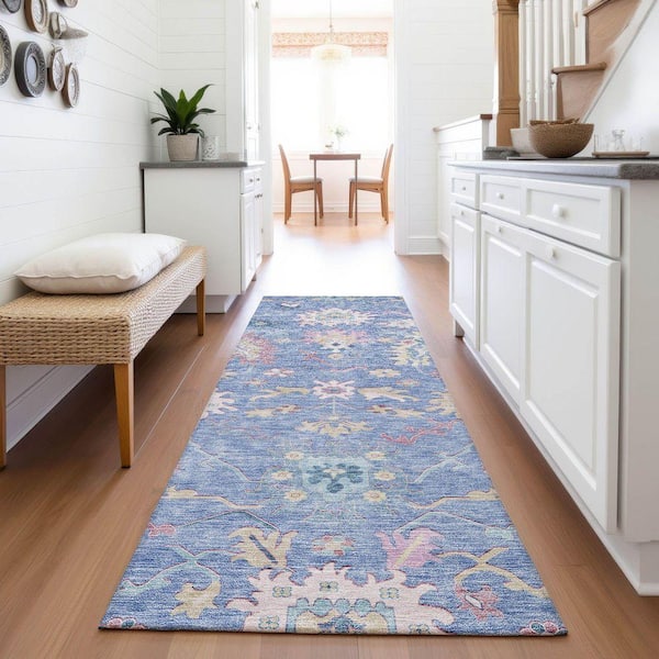 Mayfield Premium Machine Washable Abstract AMF1154 Blue 2 ft. 3 in. x 7 ft. 6 in. Runner Rug