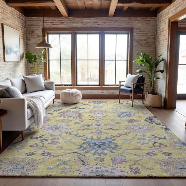 Mayfield Premium Machine Washable Abstract AMF1154 Yellow 8 ft. x 10 ft. Area Rug