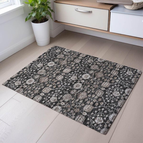 Mayfield Premium Machine Washable Abstract AMF1155 Black 2 ft. x 3 ft. Area Rug