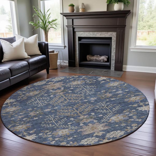 Mayfield Premium Machine Washable Abstract AMF1156 Blue 8 ft. x 8 ft. Round Rug