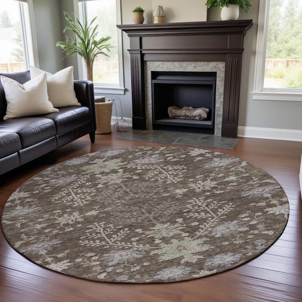 Mayfield Premium Machine Washable Abstract AMF1156 Brown 8 ft. x 8 ft. Round Rug