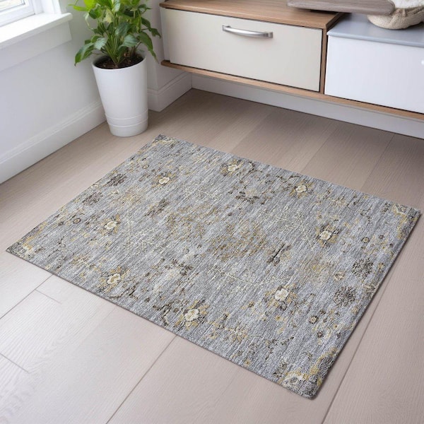 Mayfield Premium Machine Washable Abstract AMF1156 Gray 2 ft. x 3 ft. Area Rug