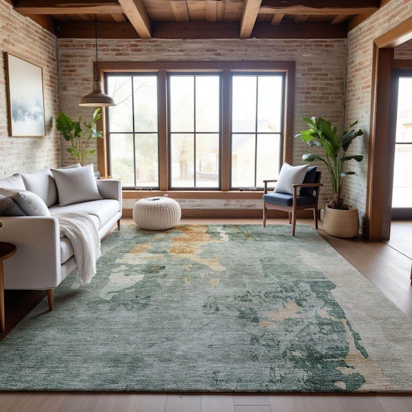 Mayfield Premium Machine Washable Abstract AMF1157 Seafoam 5 ft. x 7 ft. 6 in. Area Rug