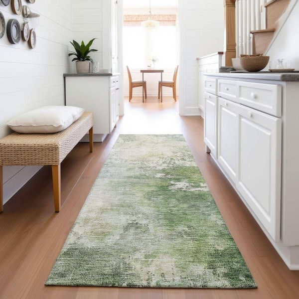 Mayfield Premium Machine Washable Abstract AMF1158 Aloe 2 ft. 3 in. x 7 ft. 6 in. Runner Rug